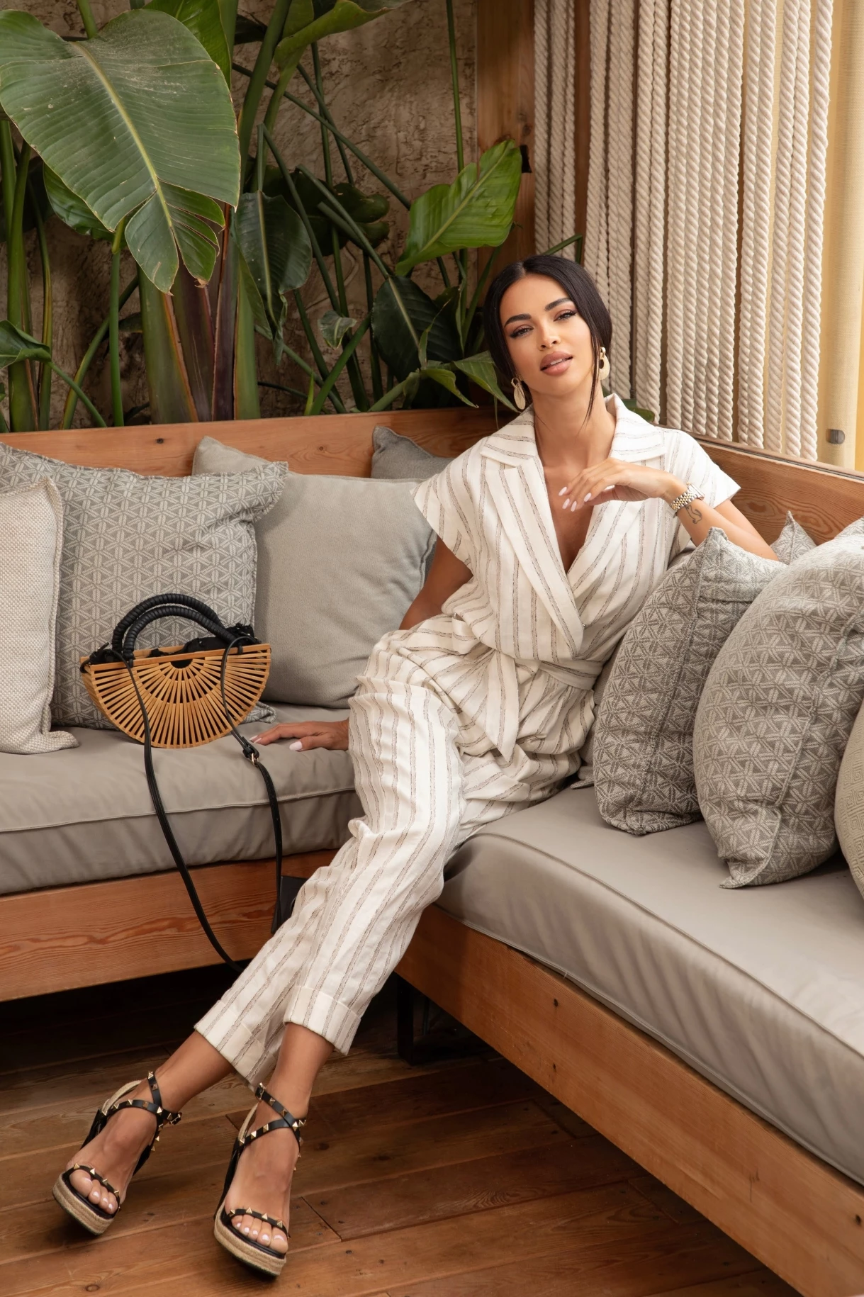 Къс бежов гащеризон лен "JARDIN DU SOLEIL"