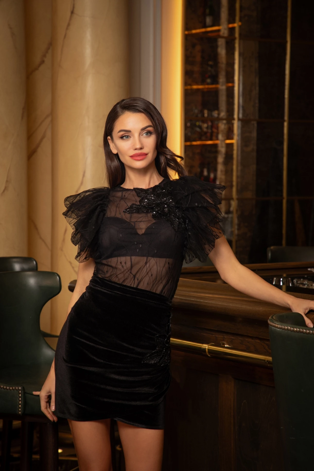 Черна пола кадифе с цвете