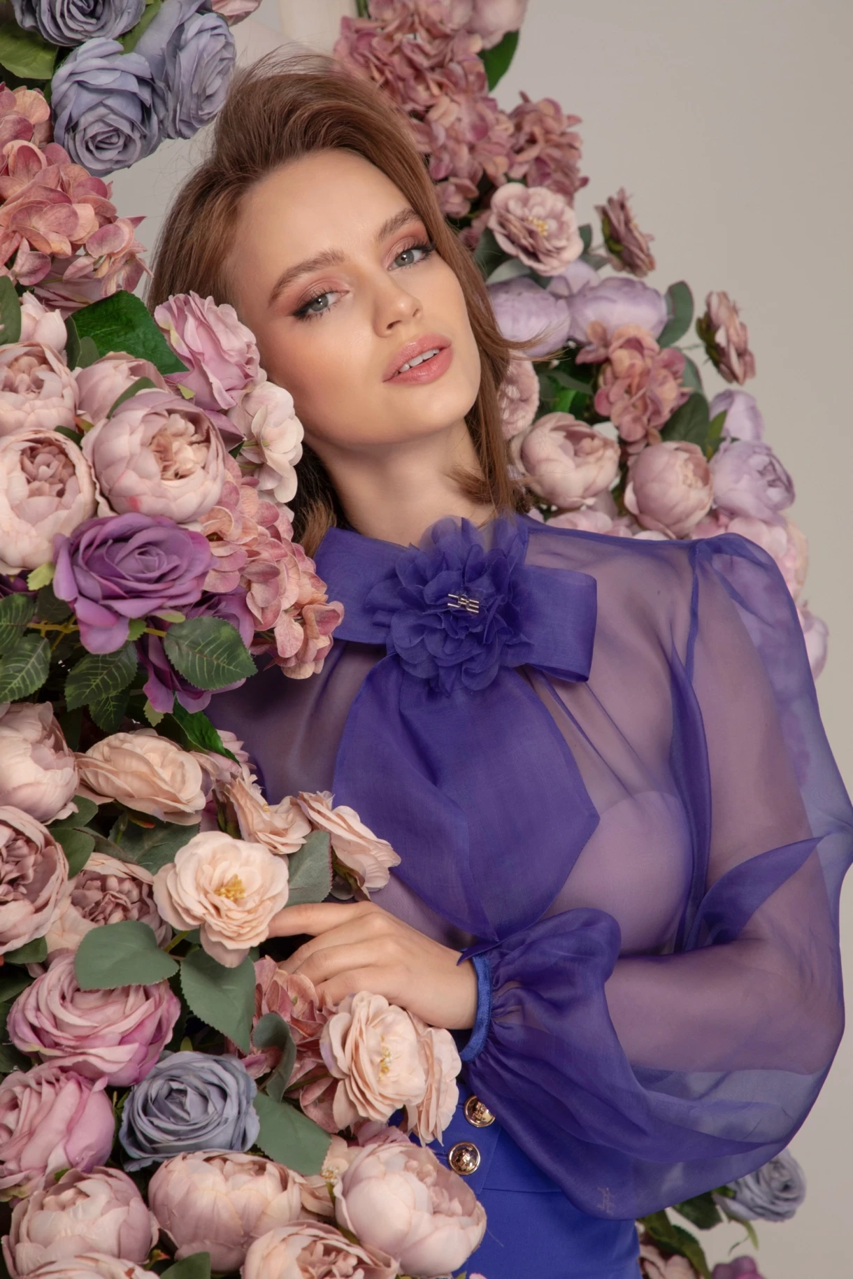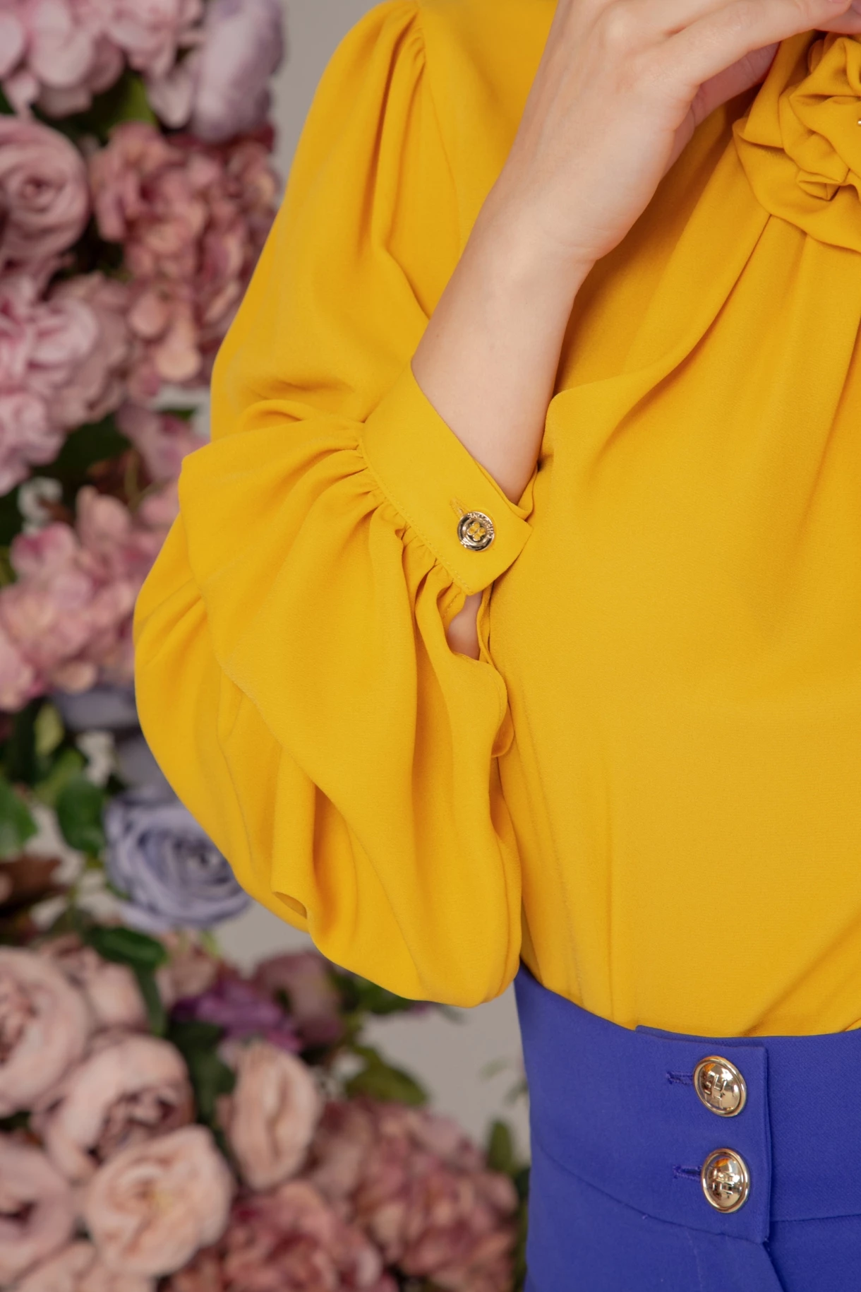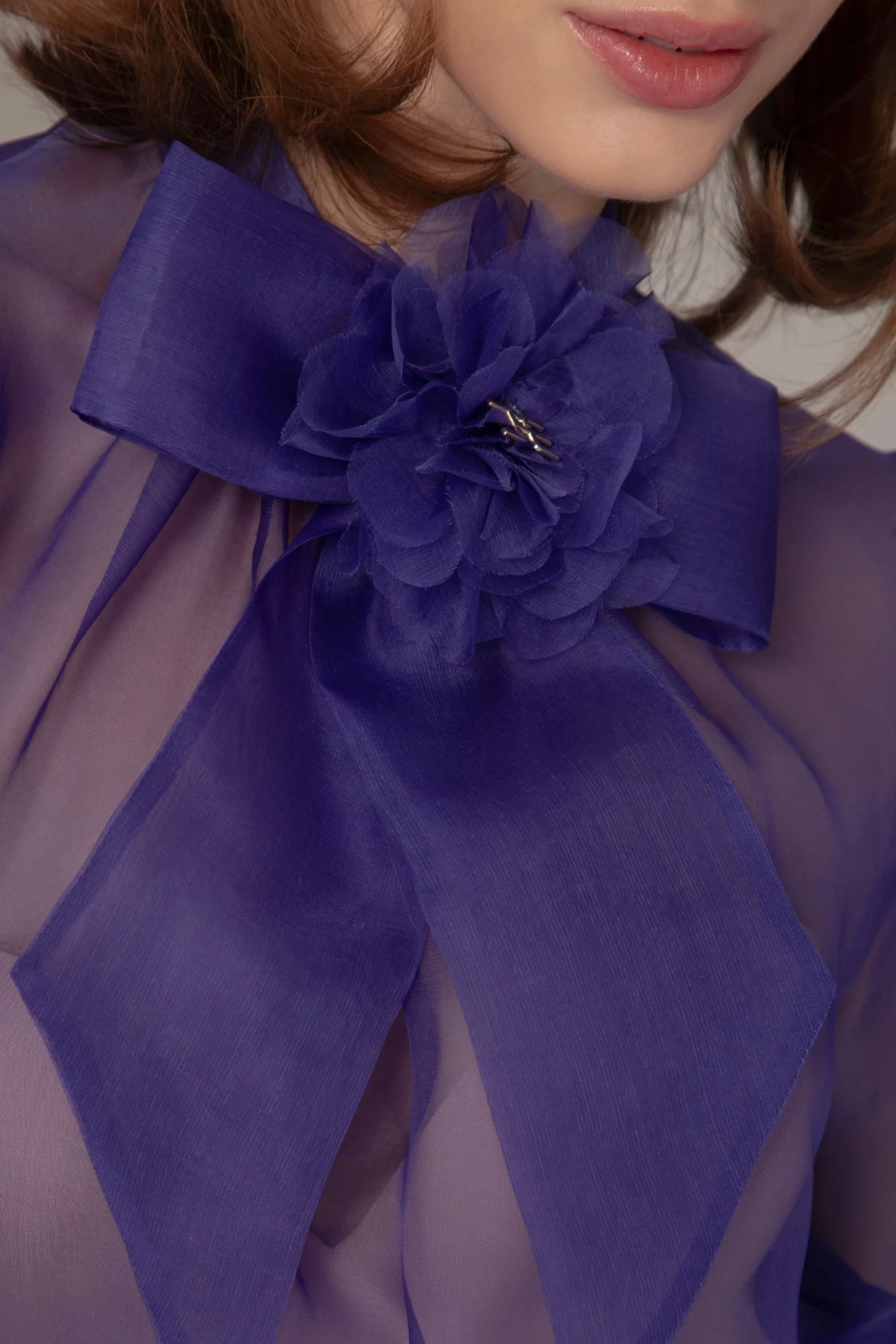 Риза от естествена коприна с ръчно изработено цвете "SILK SEDUCTION"