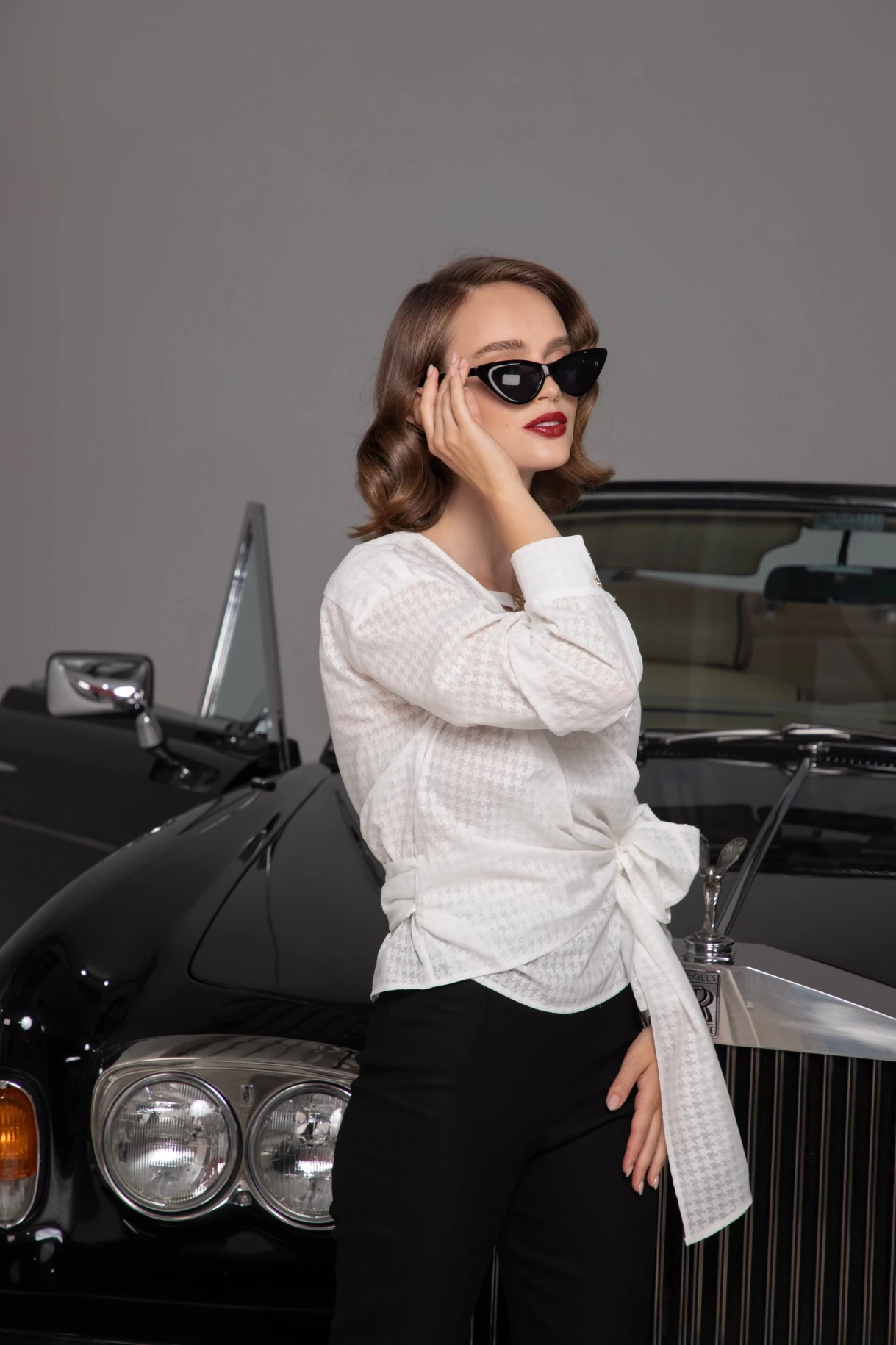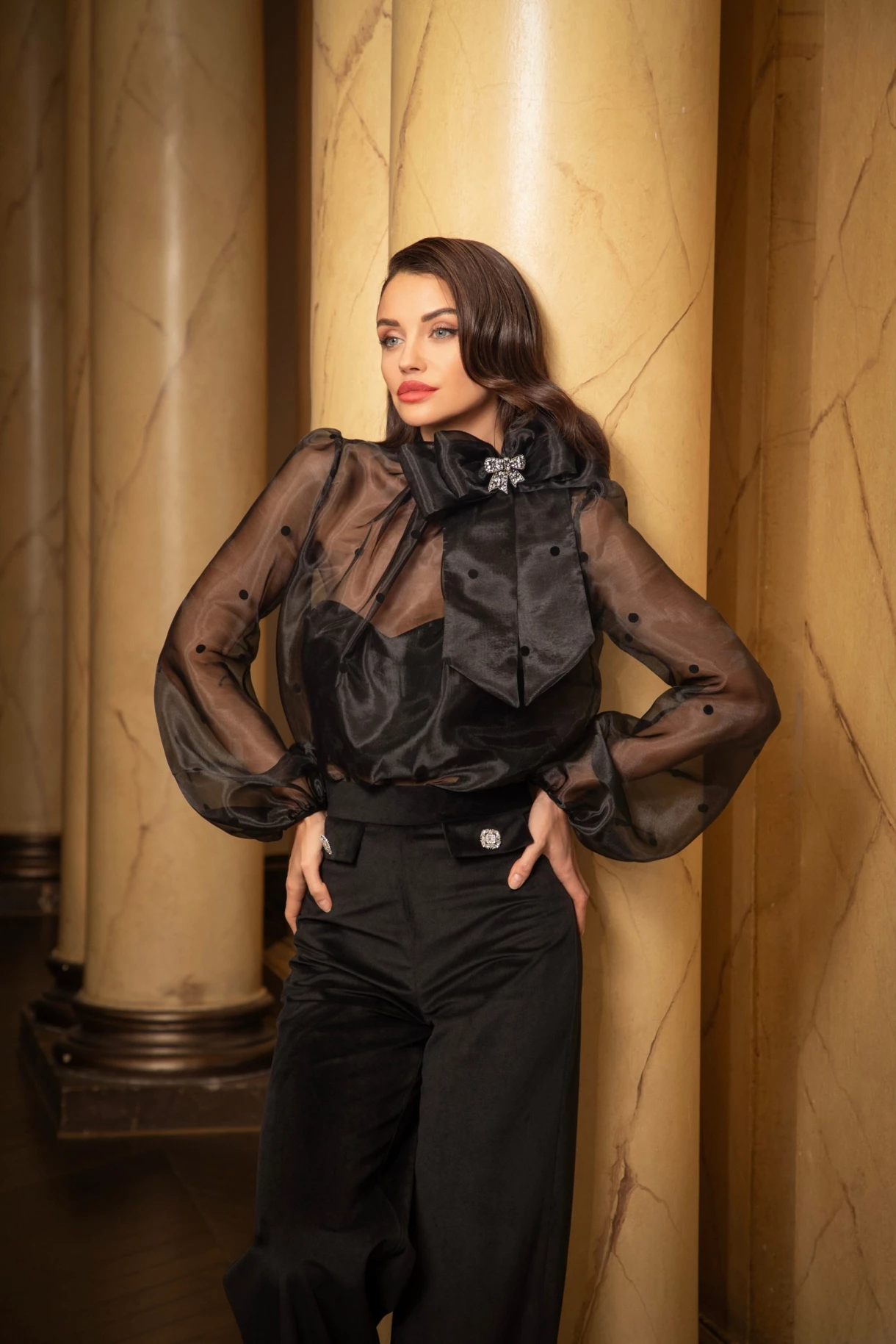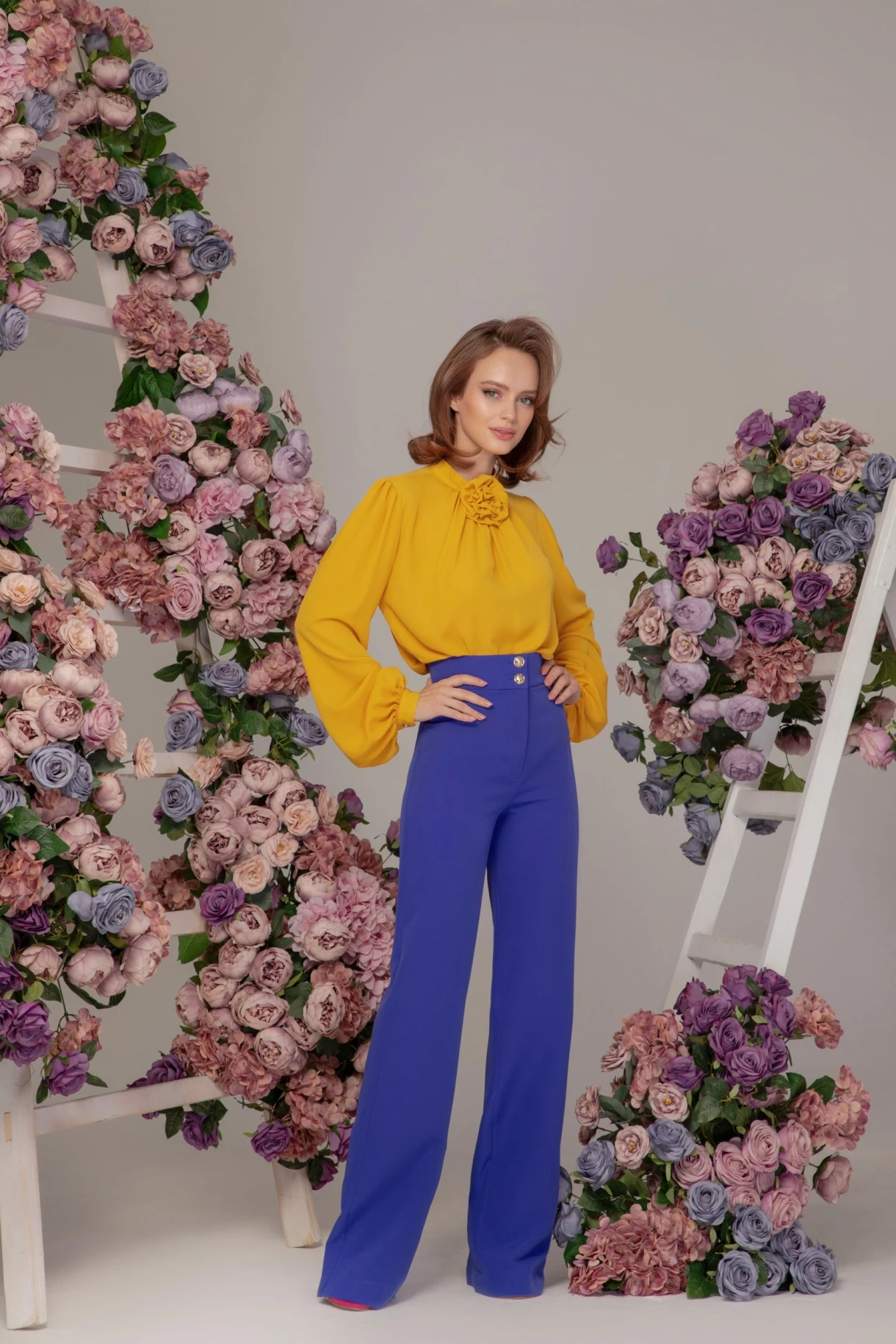 Риза от естествена коприна с ръчно изработено цвете "SILK SEDUCTION"