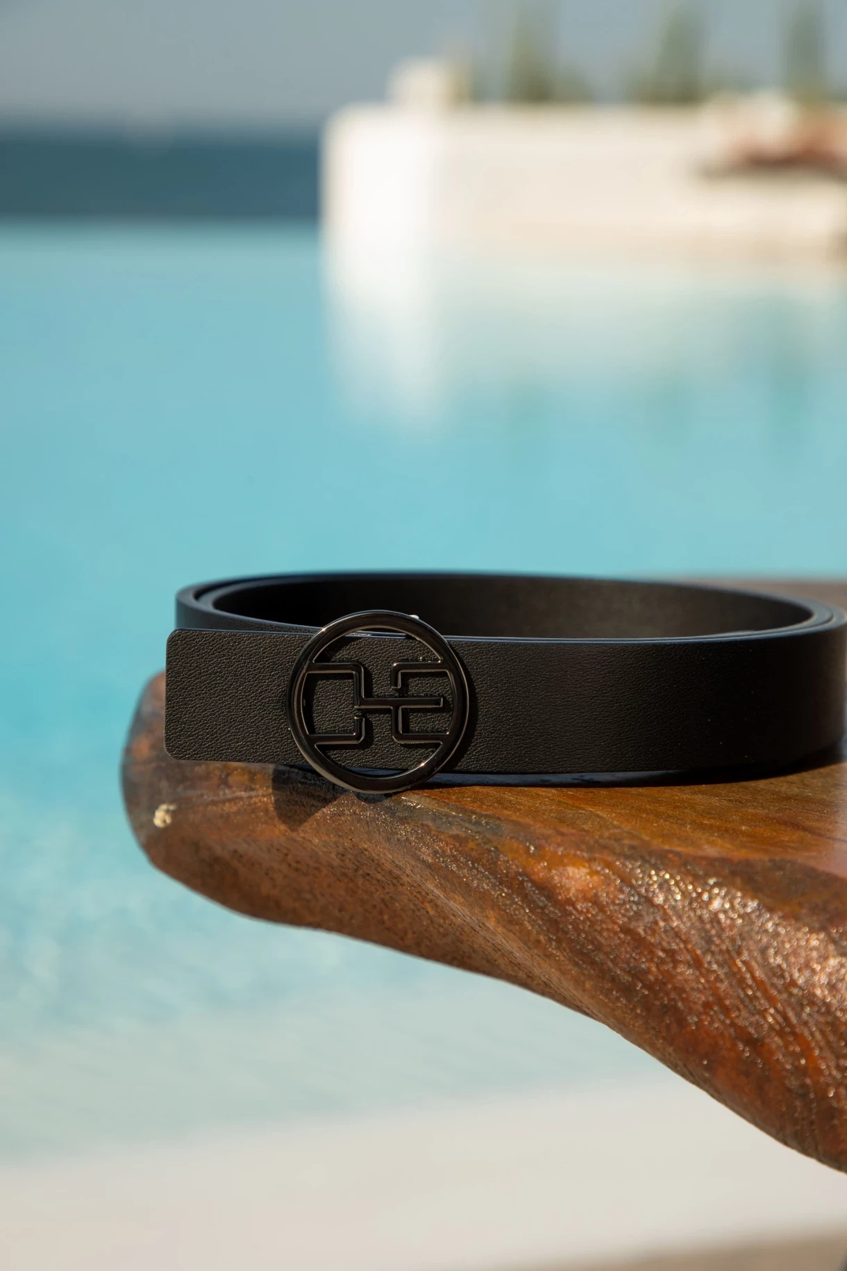 Черен колан от висококачествена естествена кожа с метална тока от неръждаема стомана. Моделът е с избор на тока в четири финиша - LIGHT GOLD, GOLD, BLACK MATTE, BLACK NICKEL.