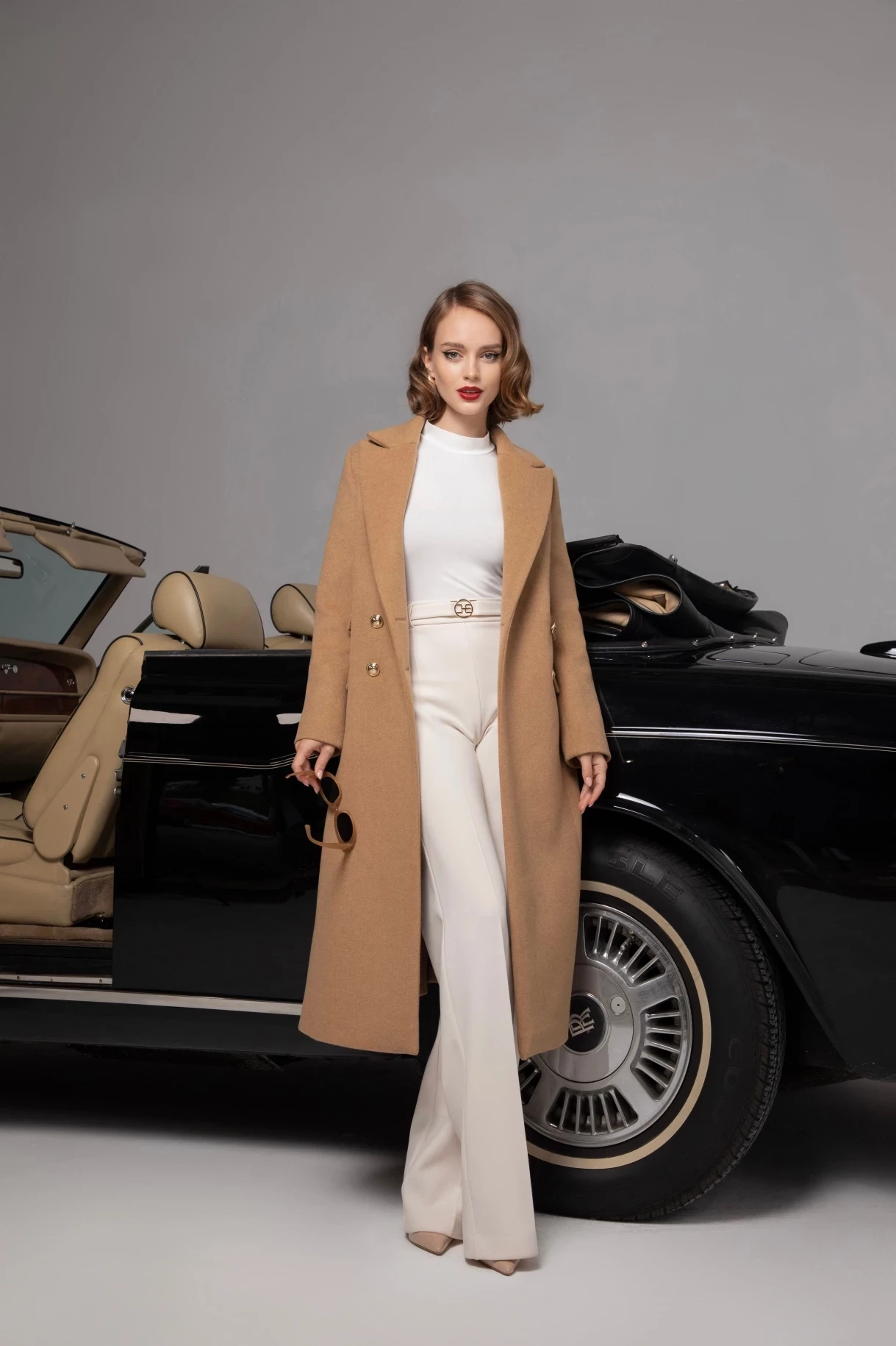 Елегантно дълго палто с втален силует, ревери, шлиц и двуредно закопчаване. Изработенo е от висококачествена, плътна и мека италианска вълна и луксозна сатенирана подплата. Палтото е с джобове и капаци, закопчаване в предната част и на ръкавите с метални златисти копчета с лого "CHRISTINE". Моделът е с декоративно коланче в задната част на талията с метална златиста тока с лого "CHRISTINE".