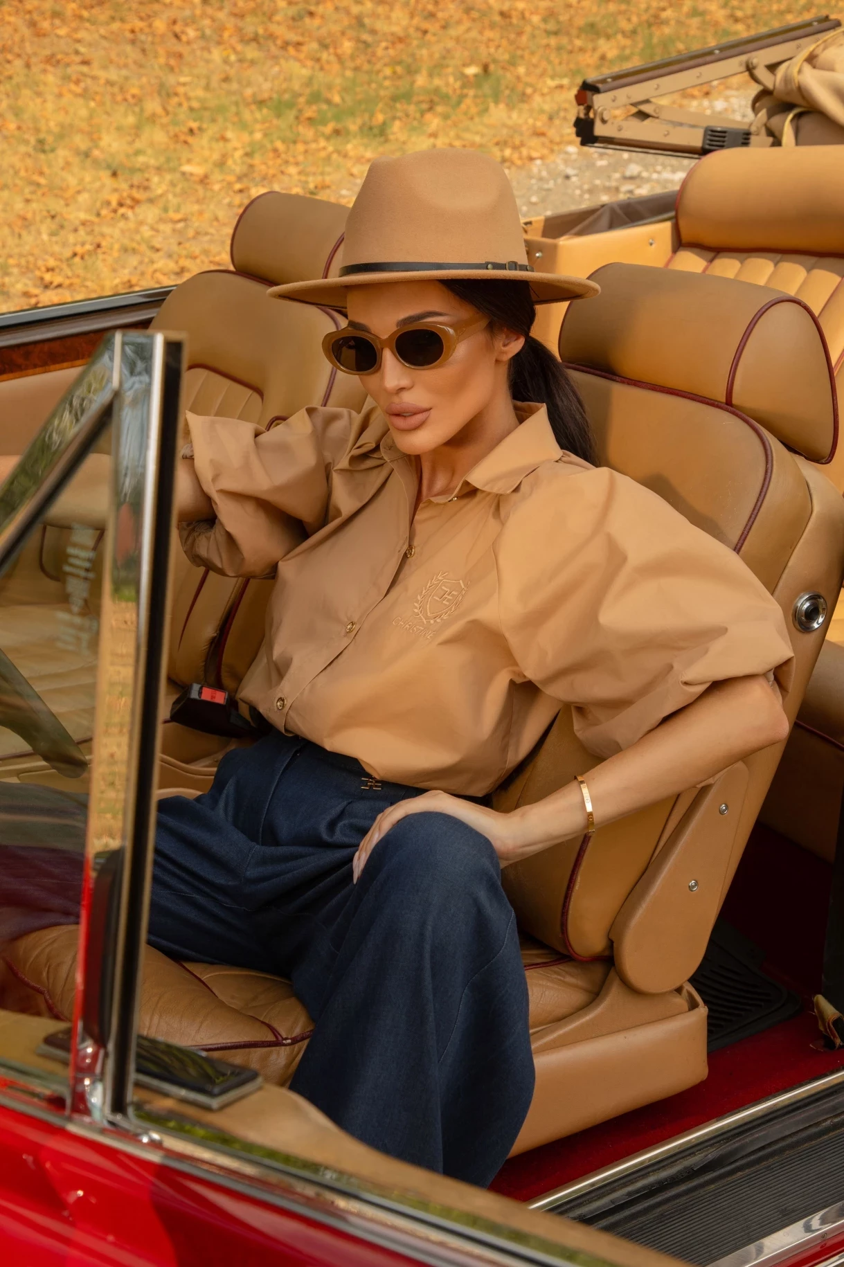 Широк дълъг панталон в тъмносиньо с висока талия, изработен от разкошна естествена материя. Моделът е с плохи, странични джобове, закопчаване в предната част с цип "YKK" и метална златиста висулка и копчета с лого.