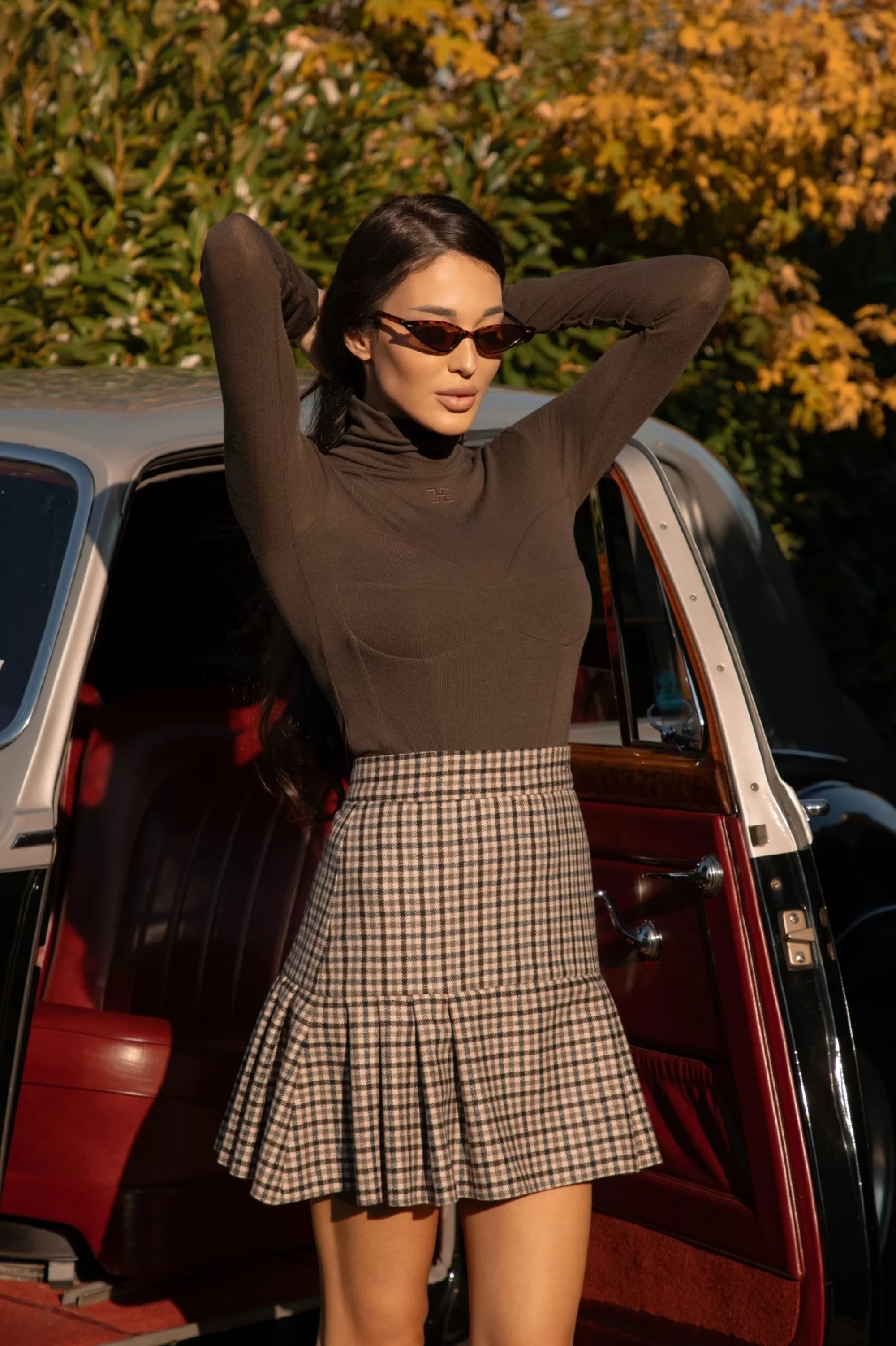 Поло в кафяво с нежна CHRISTINE бродерия в предната част и ефектен оформящ силует тип "бюстие". Моделът е изработен от фино и нежно плетиво. Полото е с дълъг ръкав и е изцяло двойно изработено в предната част на "бюстието" и талията.